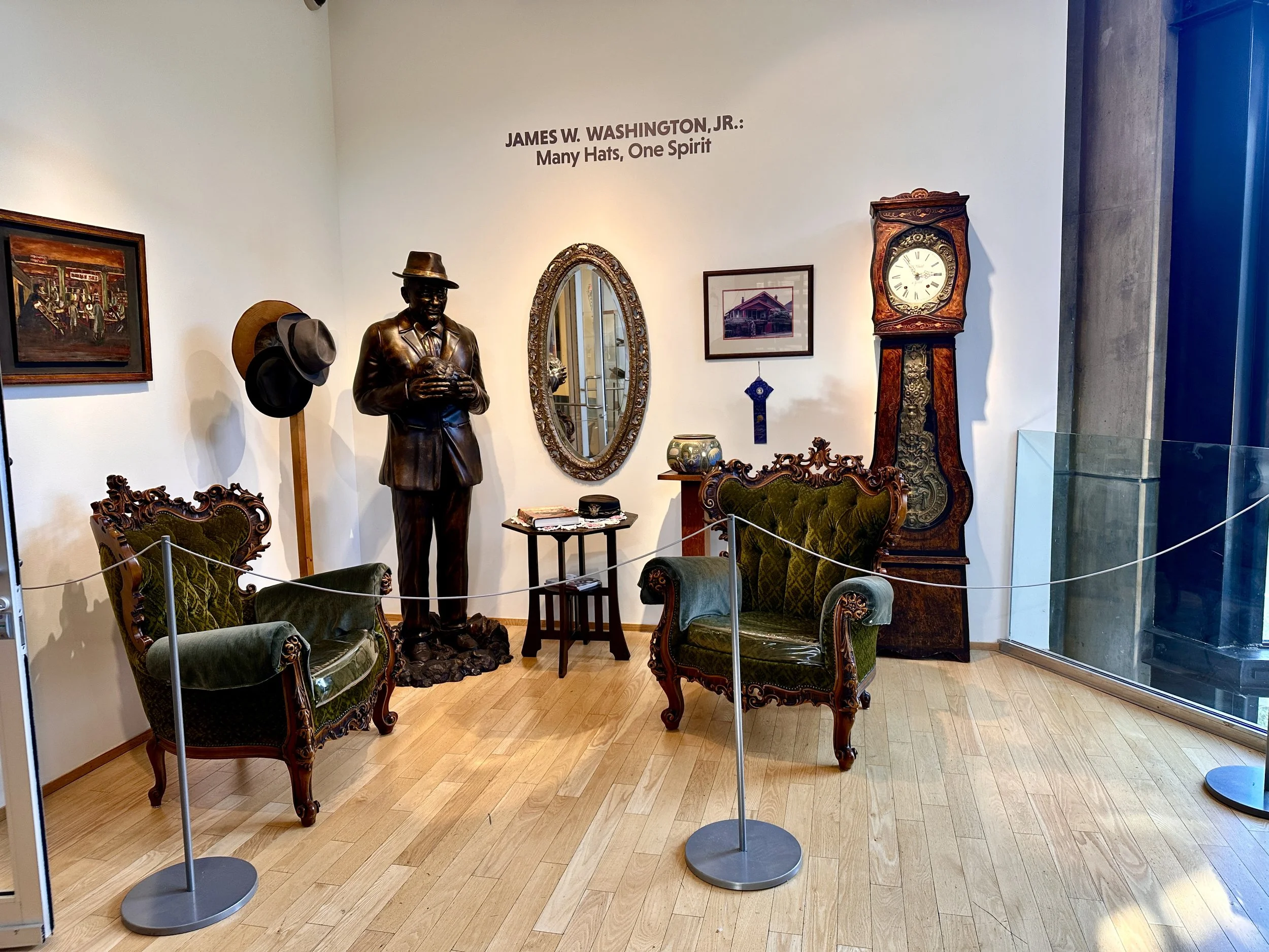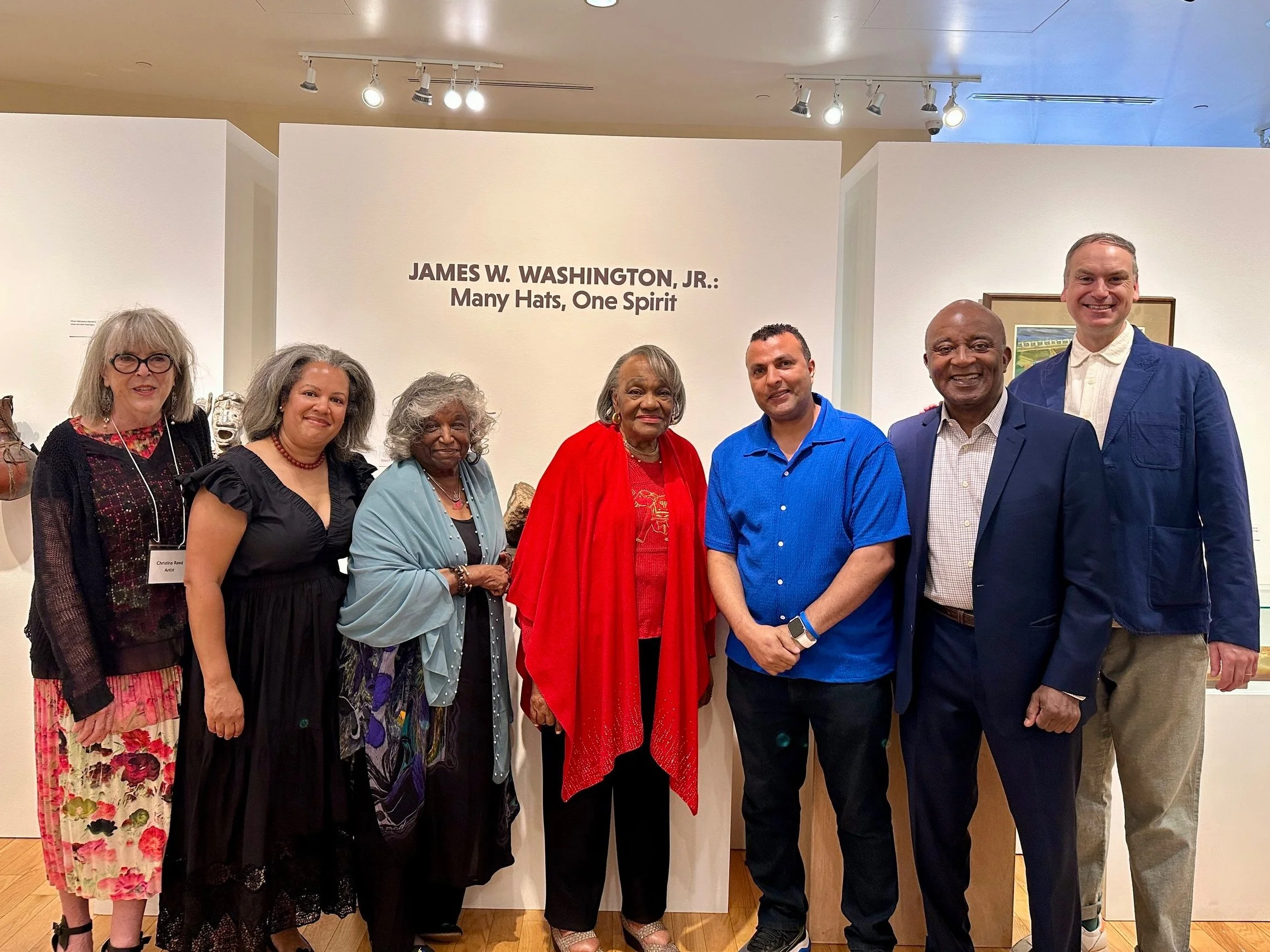 On July 19, 2025, Washington Foundation Board Members, Artists-in-Residence participants, friends, supporters, and community members gathered together for the “James W. Washington, Jr.: Many Hats, One Spirit” exhibit opening party at the Bainbridge Island Museum of Art (BIMA).